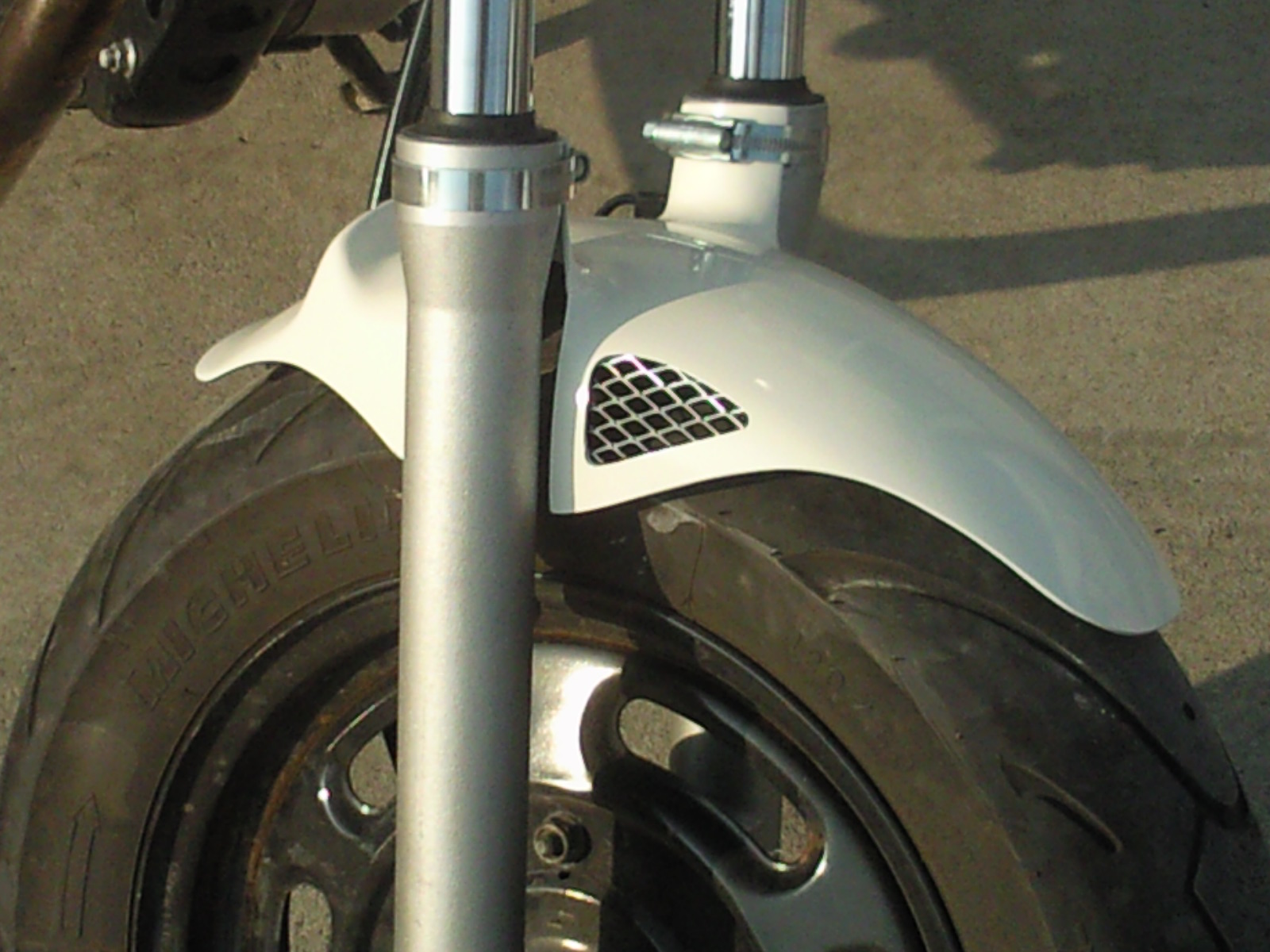ホースバンドでの固定ですのでタイヤとのクリアランスがお好みで微調整できます。
