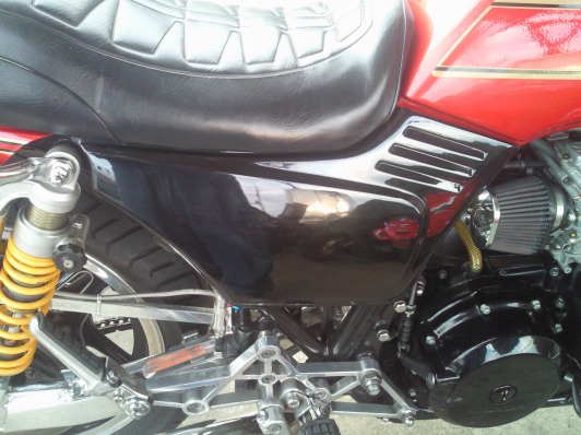 ここでは補修の際のゲージ及び欠損箇所製作のために作ったCB750Fサイドカバー用の型を用いて出来る限りの複製品を製作してみました。