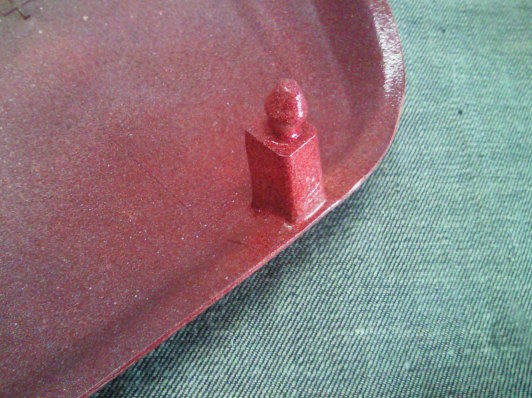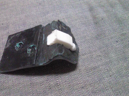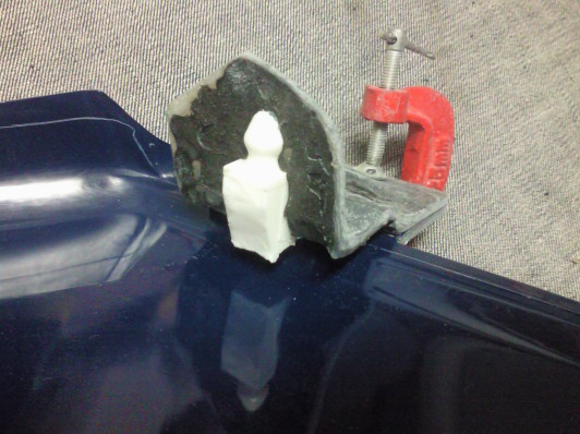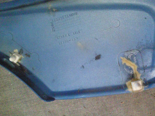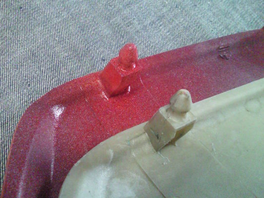 さて、あとは純正サイドカバー・レジン製ダボ・FRPパーツこの3点を合体させればいいわけですが、試した方も多々いらっしゃると思いますがエポキシ系接着剤でボテボテに付けてもその時は付きますがいくらもせずに剥離してきます。