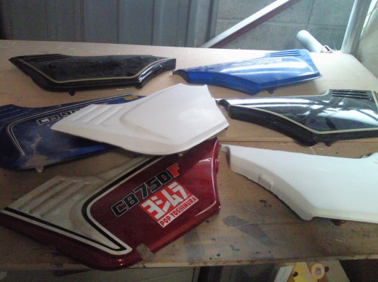 左下画像は製品誤差やモデルによる形状の違いなどを確認するために集めたCBのサイドカバーです。