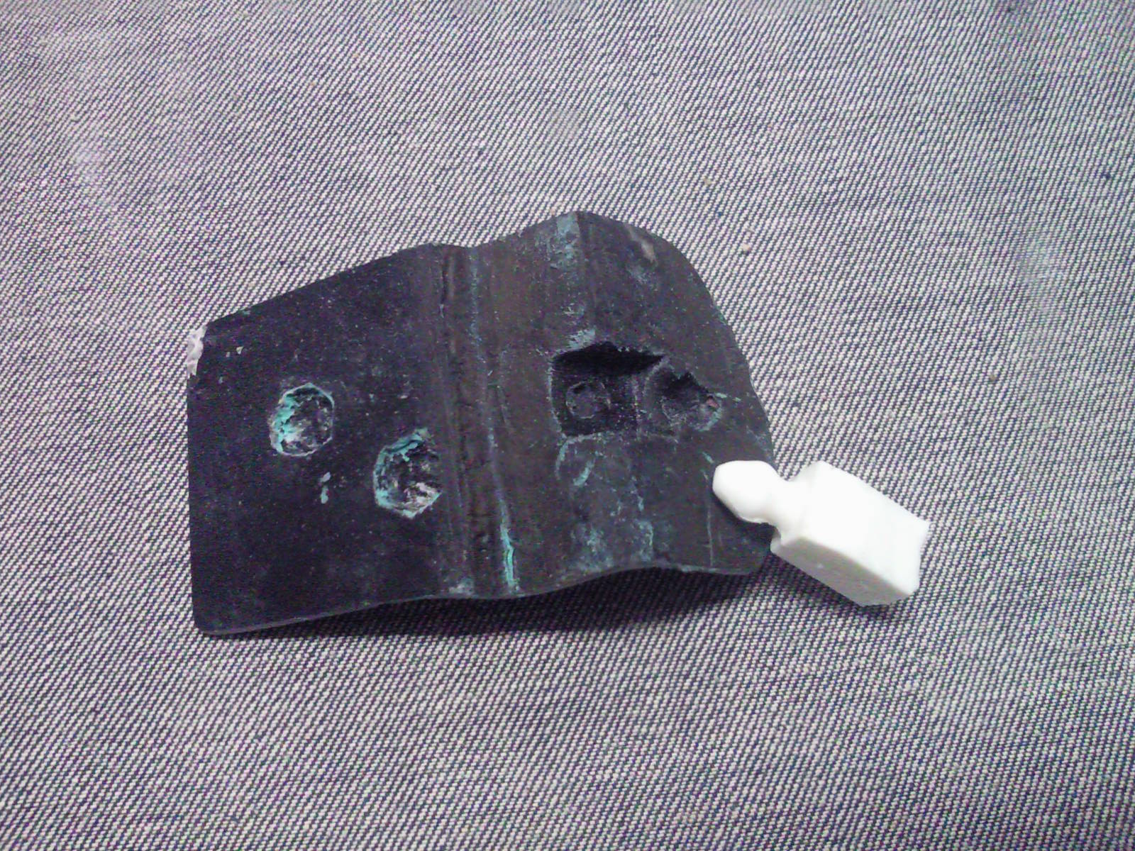 まず、吟屋工房ではこのダボの再生から着手しました。理想は同じ側のサイドカバーの壊れていないものから採寸できればいいのですが、無い場合は逆側サイドカバーからダボを複製します。