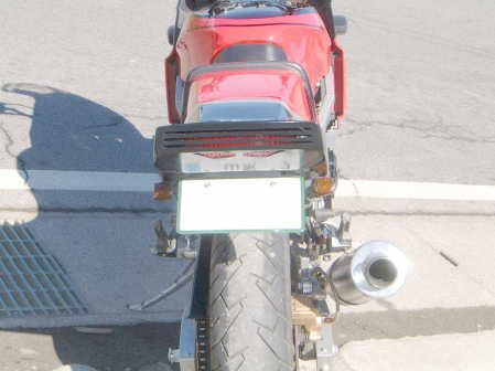 取り付けは純正のテールカウルに被せるだけです。両面テープだけでも付きますが、下面の目立たないところに脱落防止にタッピングビスを付けることをお勧めします。
