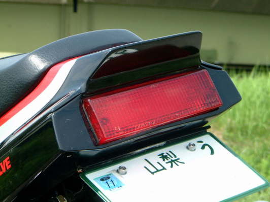 取り付けは純正テールカウル裏面に両面及び脱落防止ビスです。