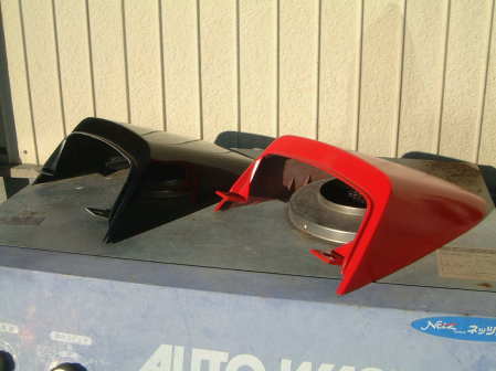 なぜ、丸ごと交換でないのかというと、純正色のシルバーライン入りの色の場合テールカウルだけで3色塗りわけとなり、塗装代や手間がかかるからです。
