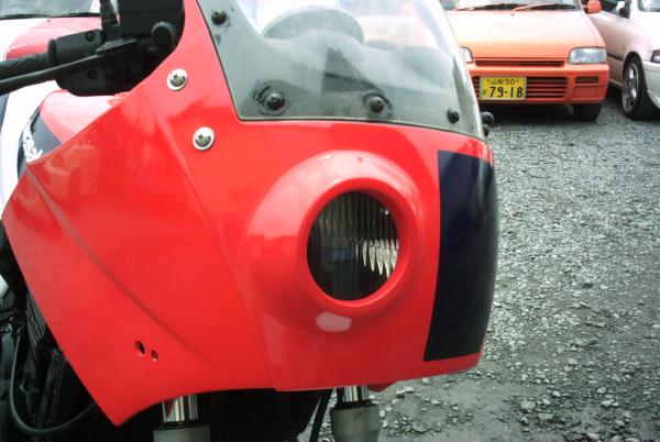 もし、今カワサキがもう一度GPZ400Rを2008年モデルとして発売したらきっとこんな感じかな・・という妄想から生まれたフェイスマスク(ライトカバー)です。純正アッパーカウルのライトの上に被せるお気軽パーツです。