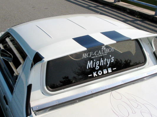 西日本方面のサーキットを中心に活躍中のマイティーズ神戸、全面監修によるデザインと実用性を兼ねたルーフスポイラーです。商品名もマイティーズ神戸のデモカーのちびデビル号より頂きました。