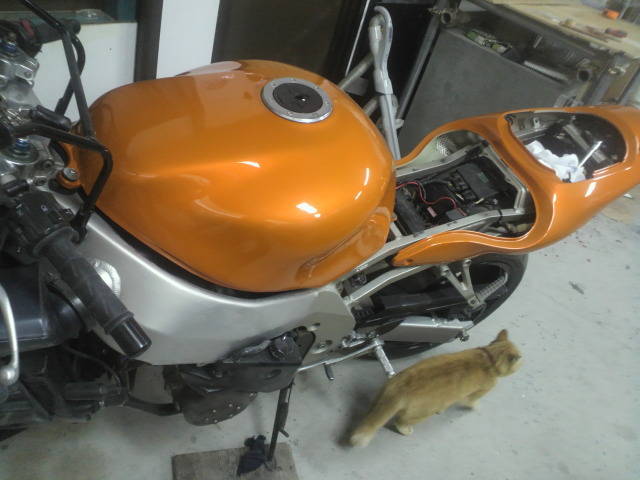 そしてこっちは自分のバイクです。とりあえず仮組み状態ですが、あとはアッパーカウル裏側を黒く塗れば外装は組めますね。