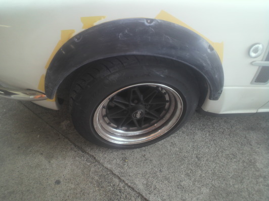 社外のロードスター用のオーバーフェンダーですが、車体形状がノーマルとは違っているので当然そのままでは付きません。