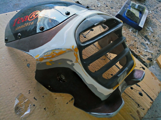 9/20 三重県 N様のXJR1300です。今現在FRP用のサフェを吹いて細かい傷や面の調整を行っています。