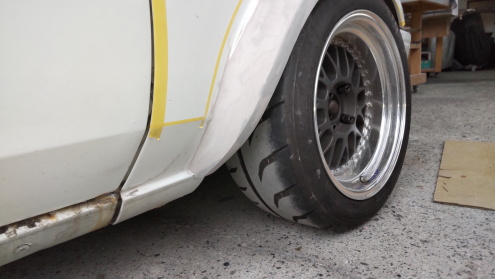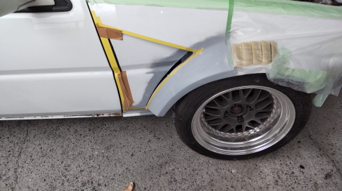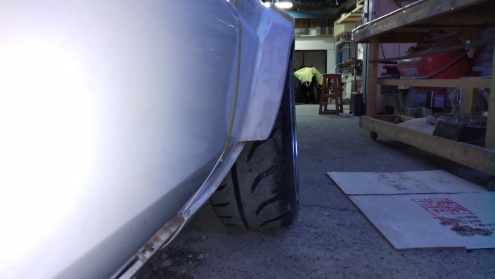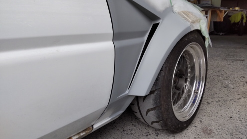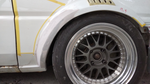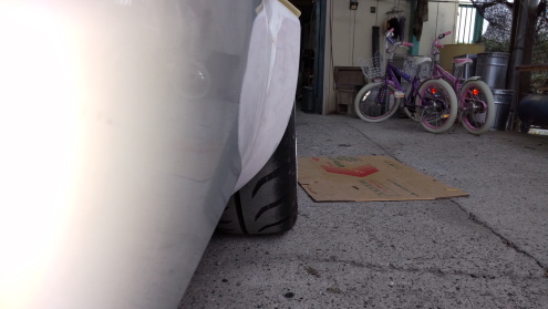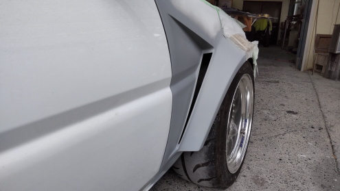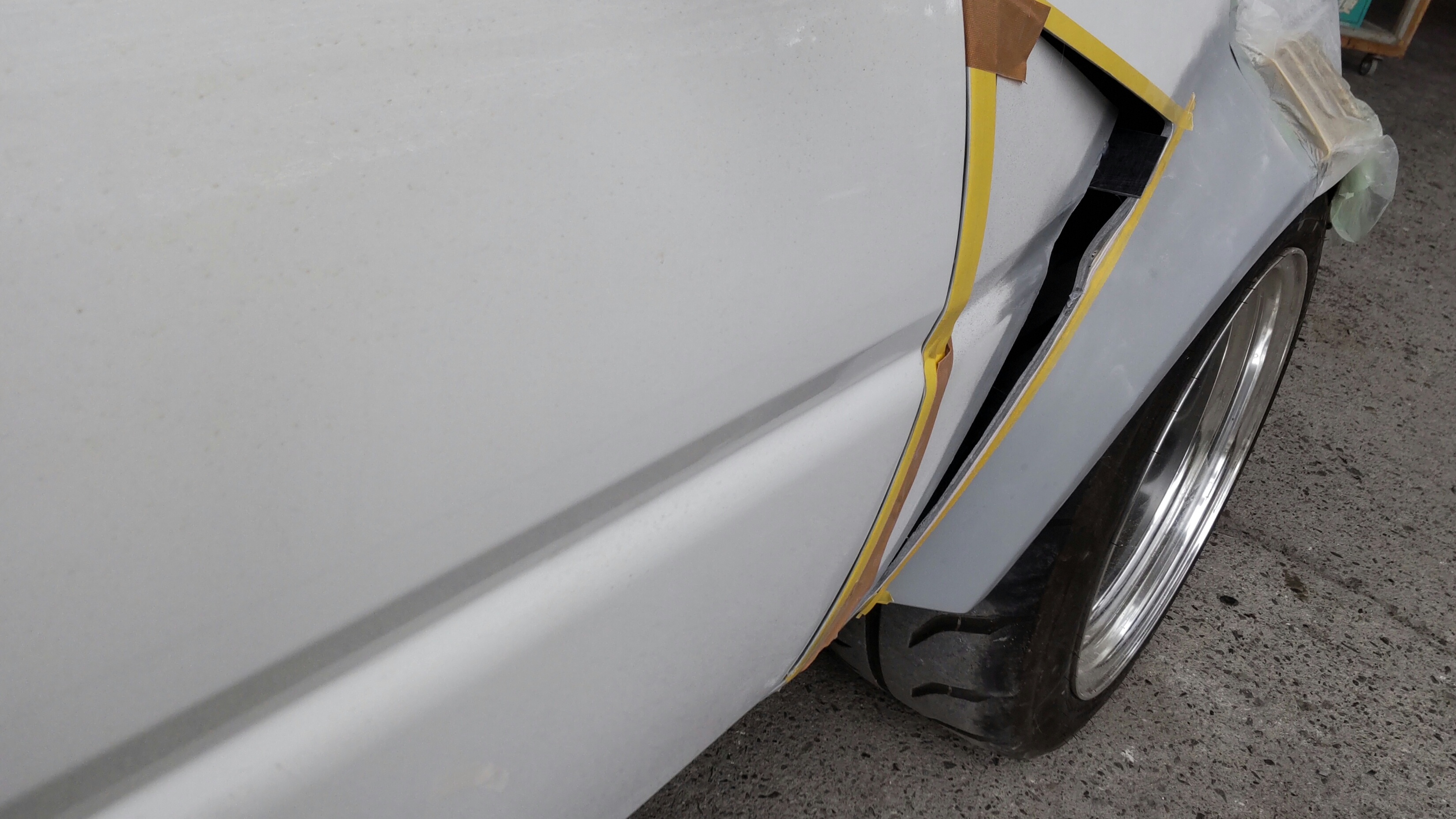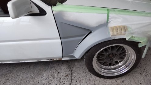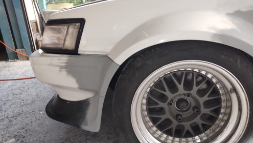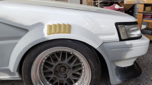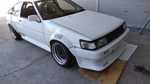 5/1 神奈川県H様のAEフロントオーバーフェンダーの形状変更、フェンダーダクト、当社製品のスポイラーを加工取り付けを承りました。