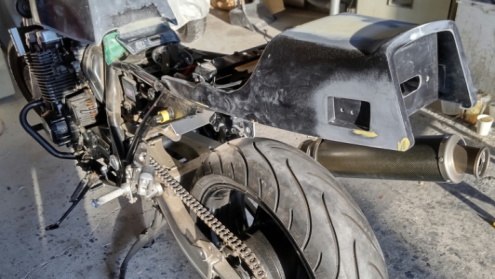 シートはMKⅡリプロ品をベースに後端をZ1R風に加工してあります。