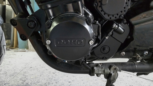 こだわりポイントは画像ではほとんどわからない外周の折り返しです。500SSのサイドカバーは鉄のプレスなので樹脂製のサイドカバーには
