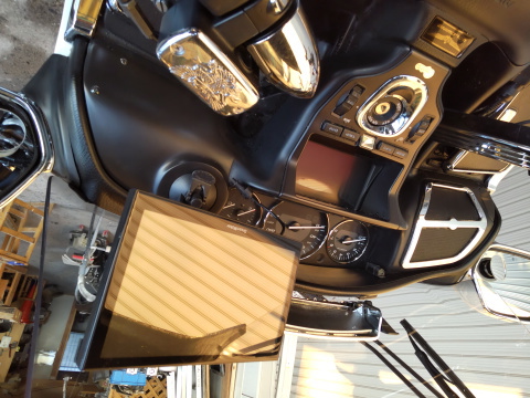 当然ゴールドウィング用のものは存在しませんので某メーカーのビックスクーター用を加工取付します。