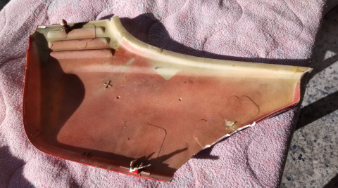 左側面が完全に取れてしまっています。モールの入る溝も一部欠損+側面に使う純正のブラケットも欠品でした。