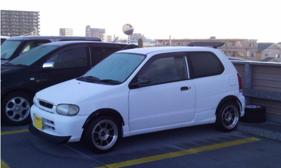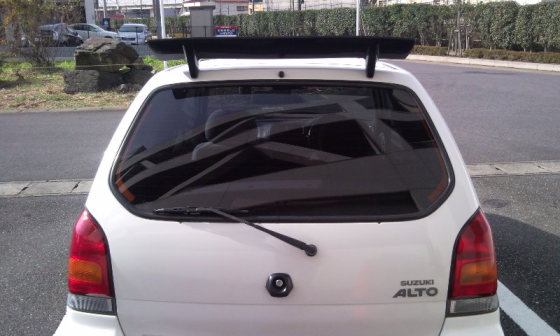 リアゲートに干渉しますが、見た目バランスだとC系アルトワークスはここがカッコいいです。(もちろん前にずらせば当たらなくもなります)