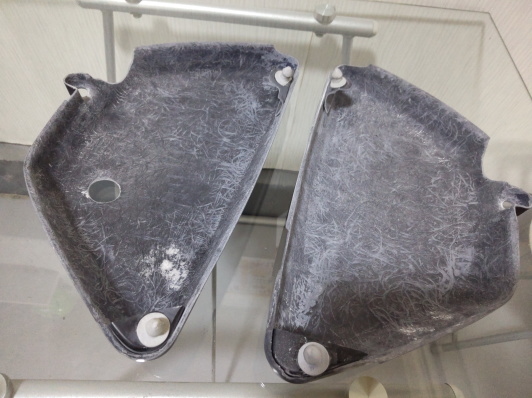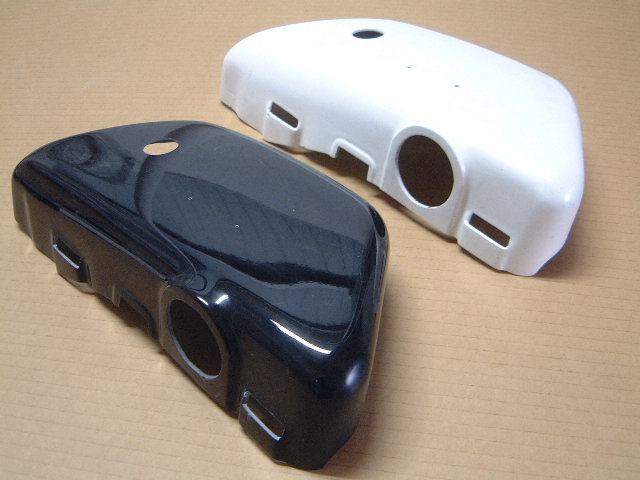 左下画像が製品です。右画像は純正サイドカバーとの比較です。