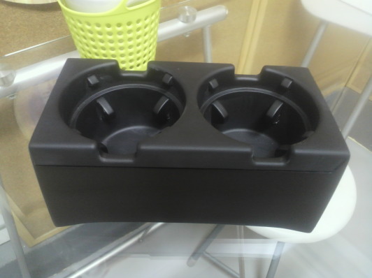 純正社外フロント用ドリンクホルダー+ケース部分黒ゲル FRP 黒つや消し塗装 背面両面テープ 底面滑り止め付