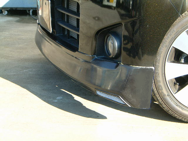 FRONT LIP SPOILER ¥ 19800 FRP製 黒ゲル(塗装ベース) アルミネット付 内巻デザイン+アルミネット付ダクトで上品なデザイン サイズも純正バンパー+下方向へ約38ミリと実用性も重視しました。 リアスポ(板っぱねタイプ・ライトカバーも合わせてご覧ください